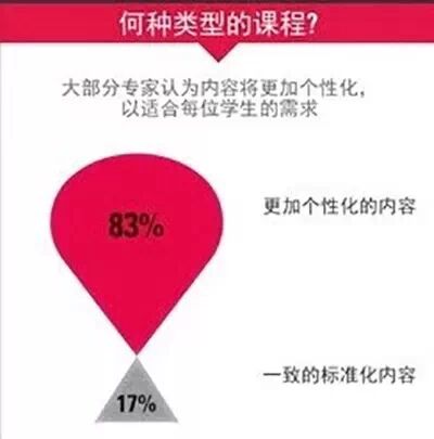 受访专家也普遍认同网络技术将有助于建设未来学校。43%的受访专家认为未来绝大部分内容将会由在线平台提供。而职业未来学家协会前主席与联合创始人约翰·马哈菲仍坚持提供实体学习空间的重要性,他认为未来学校是一种具有社交互动的学习环境,一个完整空间,大家齐聚一堂,共同建设,或一起创造。